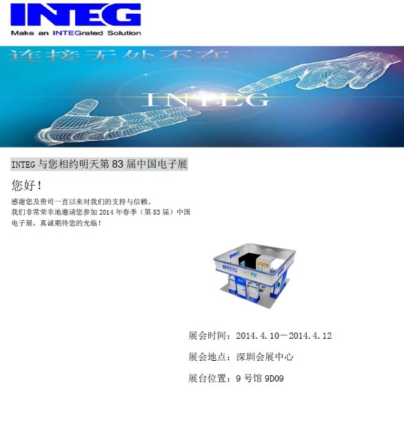 尊敬的客户,感谢您一直以来对我们的支持, 我司参加了83届中国电子展, 届时将展示我司的所代理的产品线和最新的连接解决方案,我司展位在深圳会展中心, 9号馆  9D09, 参展时间是4月10日至12日,